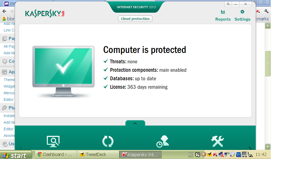Bun, şi după ce-mi vărs eu recunoaşterea vinei pe Twitter, ce credeţi! Carmen îmi sare în ajutor şi salvare şi-mi recomandă Kaspersky Internet Security 2012. Suuuuper! Deja eram ca şi iertată. Doar că de pe Lapi cel infectat nu puteam accesa linkul, mi-l dădea pagină inexistentă. Auzi, domn’le, ai naibii viruşi! Iar eu cică am avut parte de cei mai de soi, care identificau că vreau să mă aliez cu cineva împotriva lor şi-mi interziceau accesul. Fix ca găştile alea dubioase, care nu te mai lasă să te joci cu vechii tăi prieteni cuminţi şi serioşi. În fine, eu de “serioş”i aveam nevoie. Că aventurile pe torrente mi-au ajuns. Şi tot Carmen mi-a venit în ajutor. M-a trimis la dezintoxicare cu al meu Lapi mic şi burduşit de viruşi: Kaspersky Virus Removal Tool e un instrument care fix asta face mai întâi, o detoxifiere straşnică. A trebuit să-l accesez de pe fratele mai mare al lui Lapi, să-l pun pe un stick şi doar aşa să-l pot instala pe Lapi. După ce-am înregistrat un succes şi Lapi şi-a recâştigat curăţia, am descărcat antivirusul şi l-am salvat pe Lapi!
