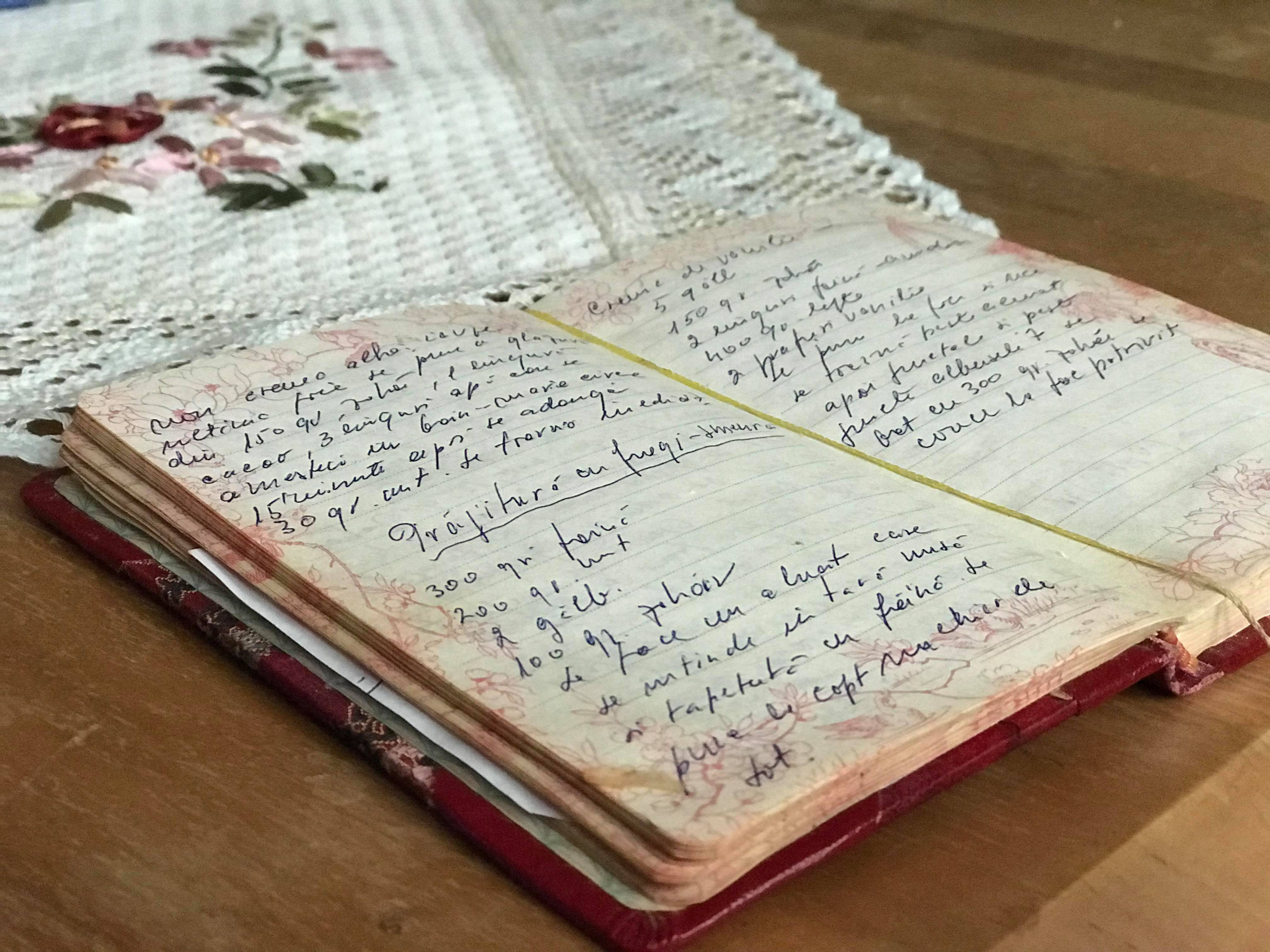 I-am spus că am pus poza pe facebook și că m-ați bătut la cap și că vreau rețeta. Așa că a venit la mine, lângă calculator, și-a deschis caietul de comori cu rețete scrise de mână. Nu e ăla antic și de demult, căruia îi zburau foile pătate de zahăr ars, e unul mai nou, cu coperți de mătase și fir pe post de semn de carte. Îmi amintesc acum câțiva ani când și-a transcris rețetele, doar ea e gospodină ordonată și nu ne permitem niciunii să se piardă din comori.