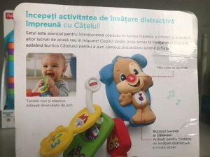 Chiar si noi am avut jucarii Fisher Price acum 10 ani. Sunt absolut minunate. Mai avem si acum catelul pe care Irina nu a vrut sa il daruim altui copilas. Si ea a invatat multe de la el, eu imi amintesc cuvantul burtica.
