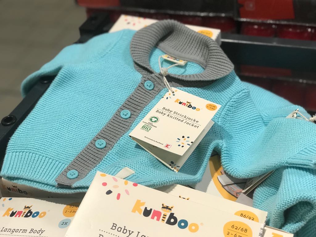 E o colecție nouă pentru bebeluși și copii, de la Kuniboo. Toate hăinuțele, certificate GOTS. Le-am văzut și pozat cu mâna mea, în magazin. Cred că un lanț mare, cum e Kaufland, își permite să aducă prețurile acestor materiale jos și să le facă accesibile pentru toți.