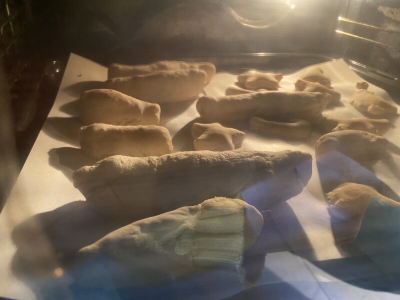 p.s. Painicile le-am taiat sub forma de biscuiti, poate observati. Steluta, brad, inima etc. Doar ca am ramas fara hartie de copt le-am pus pe hartie de scris si, bineinteles, s-au lipit.