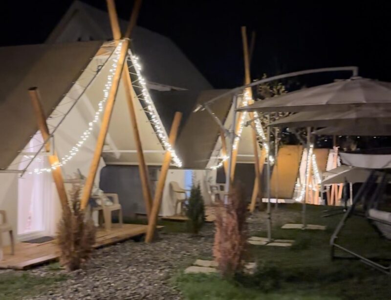La glamping era de vis. Corturile aveau beculețe albe, care luminau curtea ca la sărbători. Simțeai nasul cum ți se înroșește de la aerul curat. Auzeai pietrele cum  scârțâie sub tălpi. Bine ați venit! Tu cine ești? Io-s Ana, stai că nu te văd. Io-s Deea, păi te-am recunoscut după râs! Nici nu trebuia să zici mai mult! Io-s Miruna. Staaaai să te strâng!